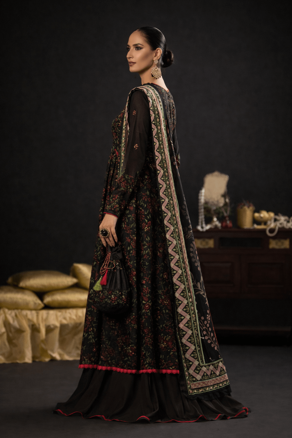 Black Floral Anarkali Dress Set