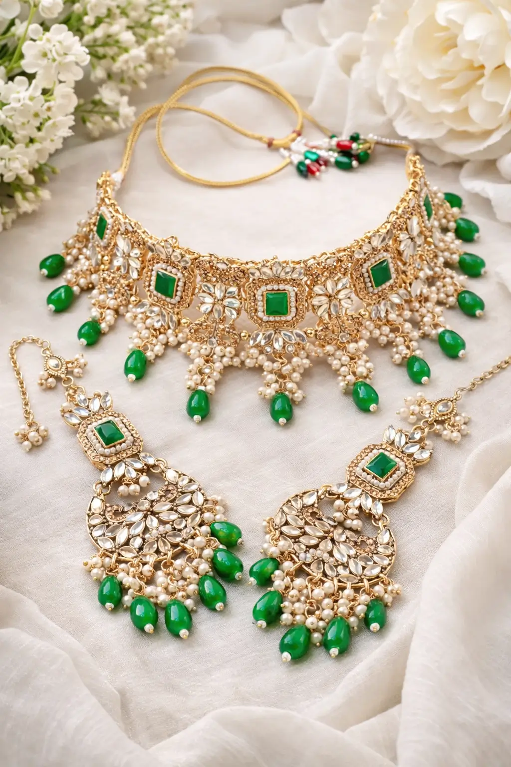 Elegant Emerald Kundan Jewelry Set