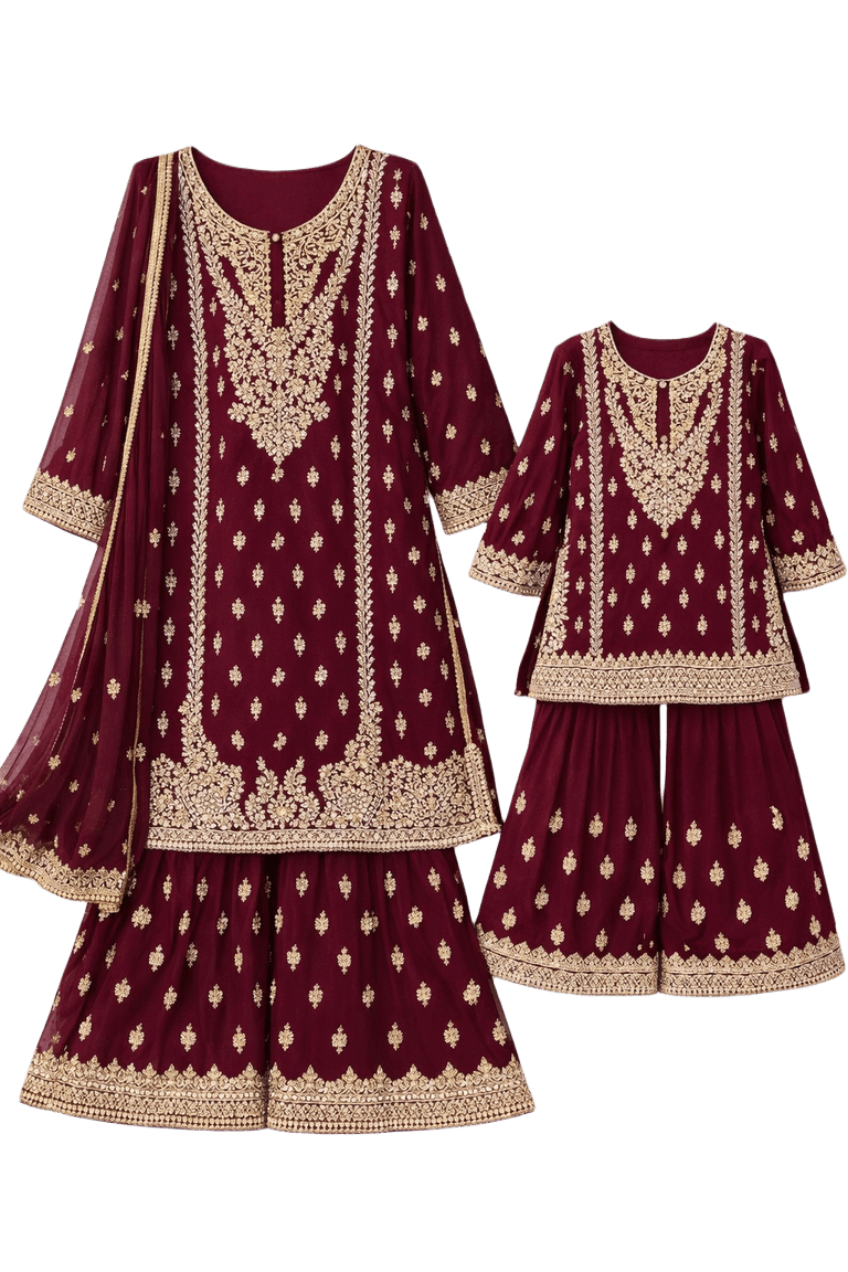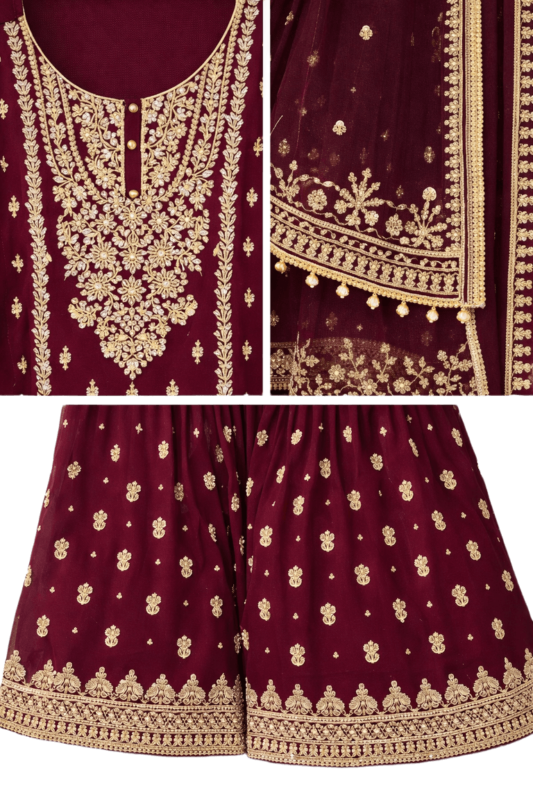 Maroon Gold Embroidered Gharara Set