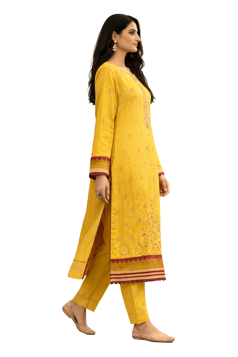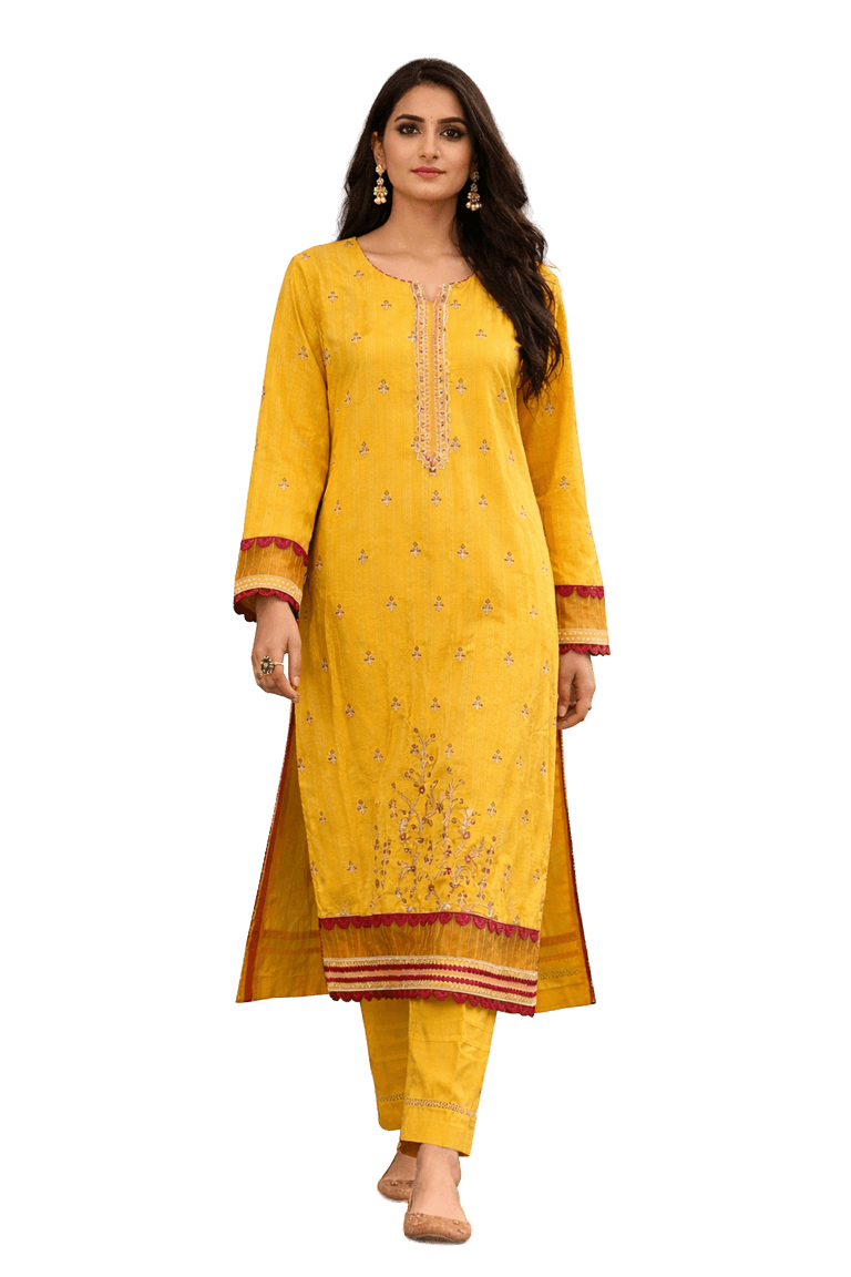 Mustard Yellow Embroidered Kurti Set