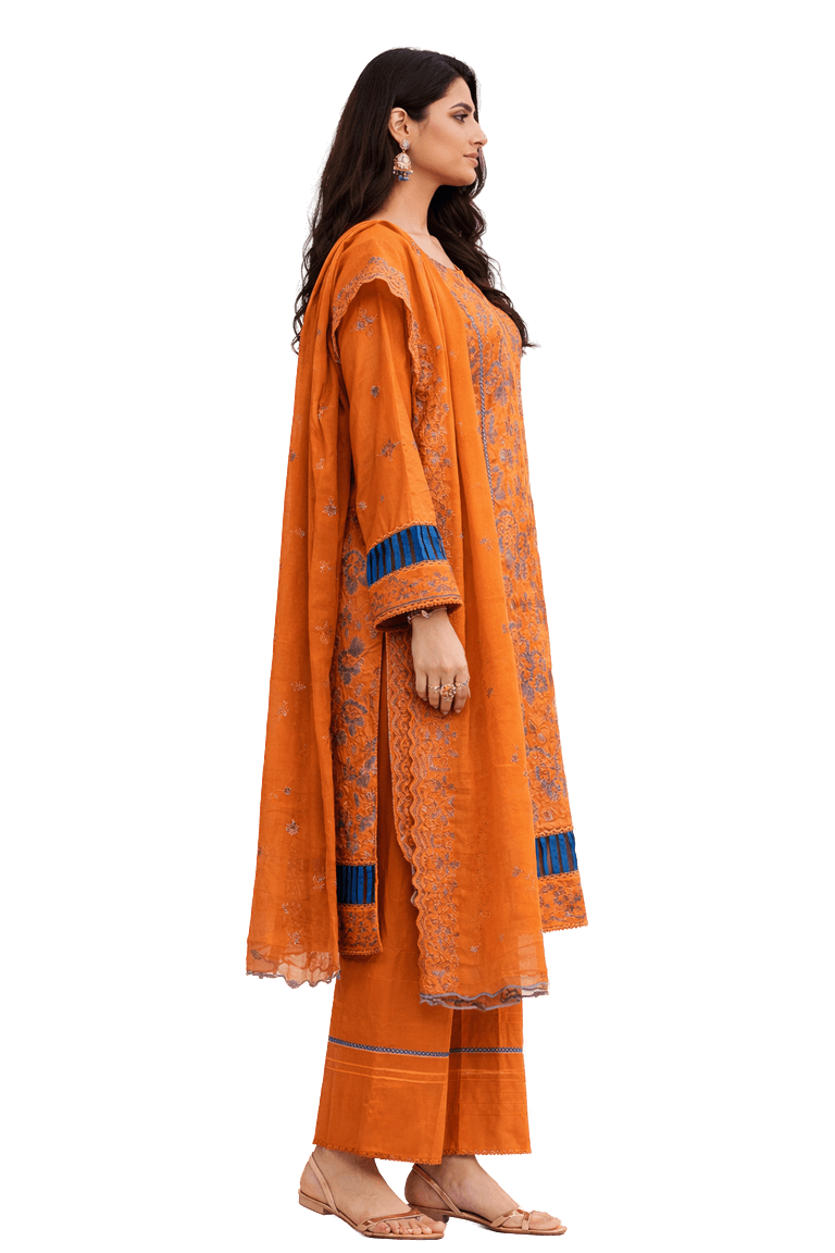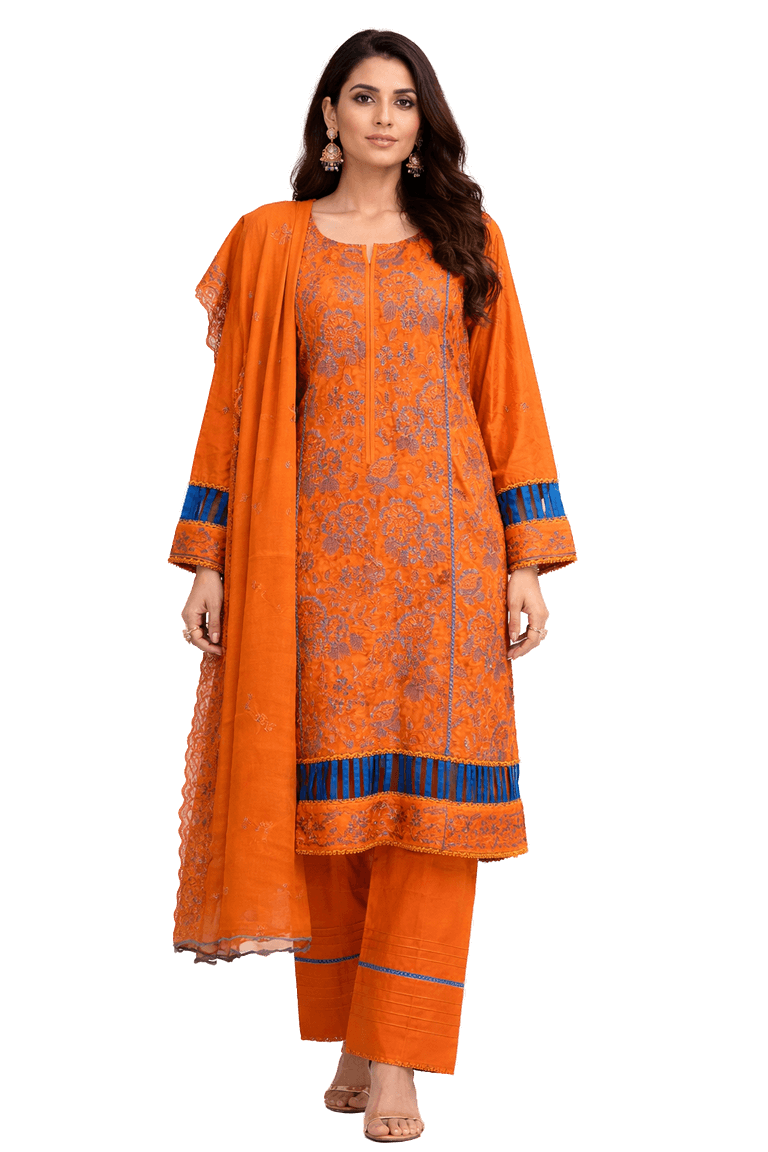 Orange Printed Kurti Pant Set