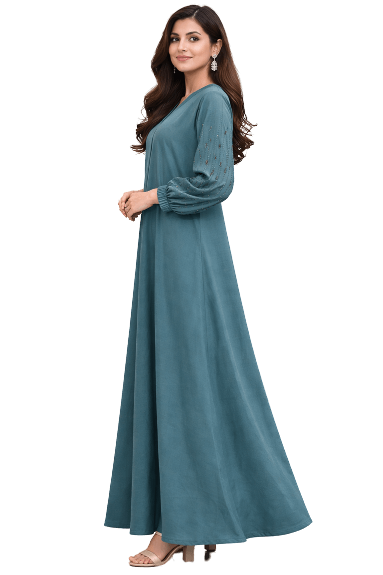 Teal A-lined buttoned Abaya