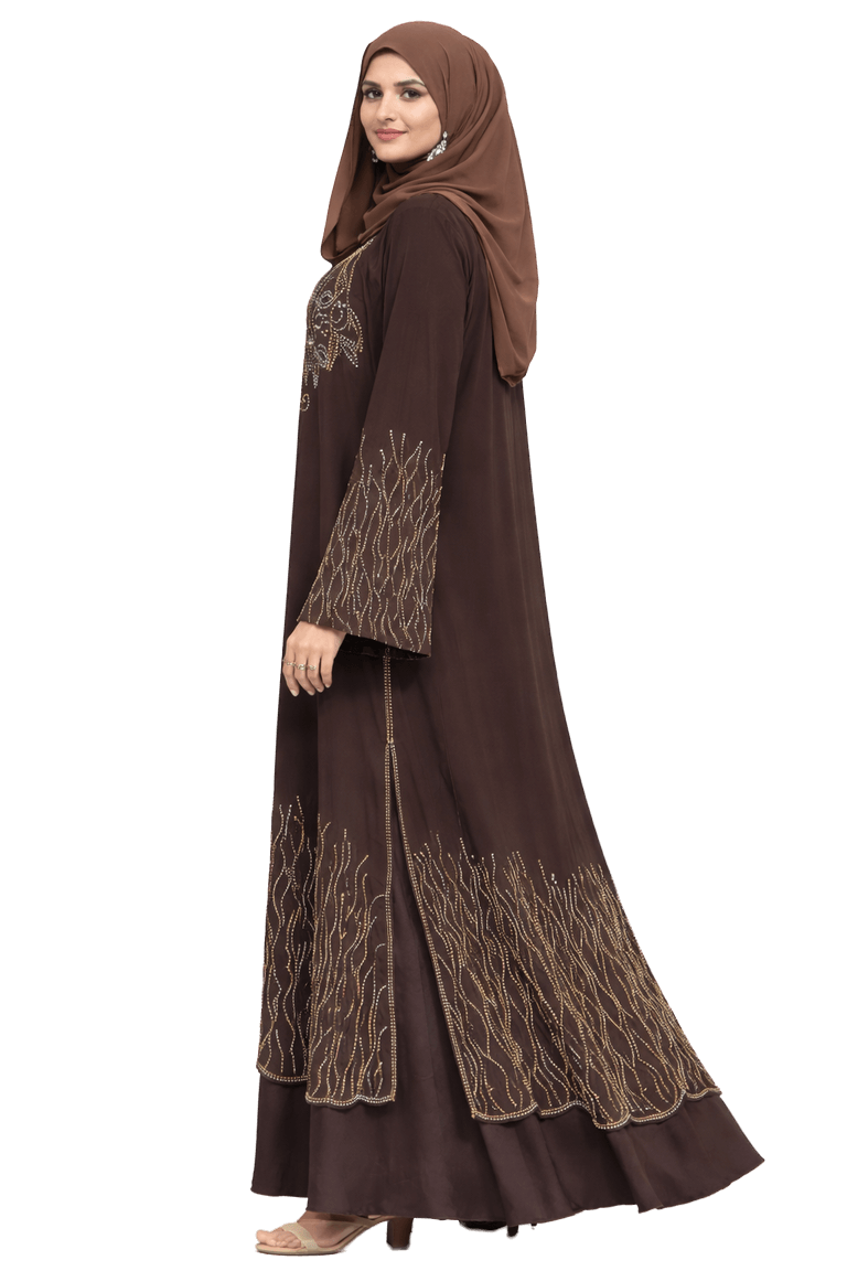 Two-piece Dark Brown Abaya. It comes with a hijab.