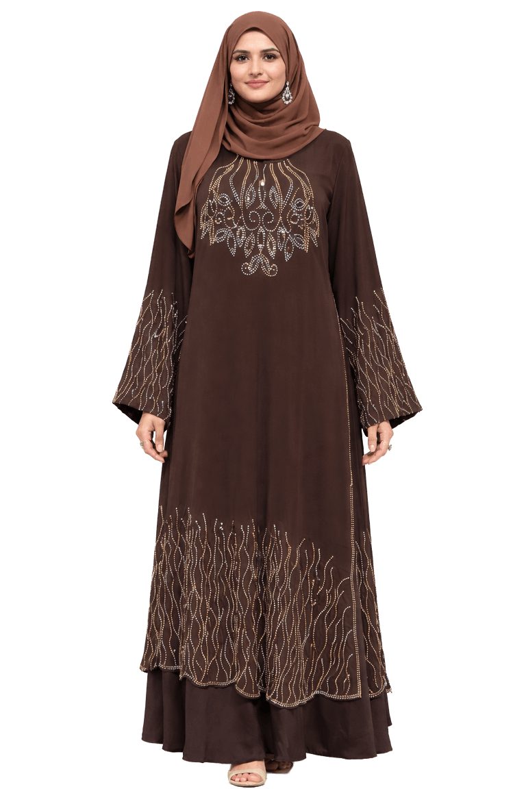 Two-piece Dark Brown Abaya with Hijab